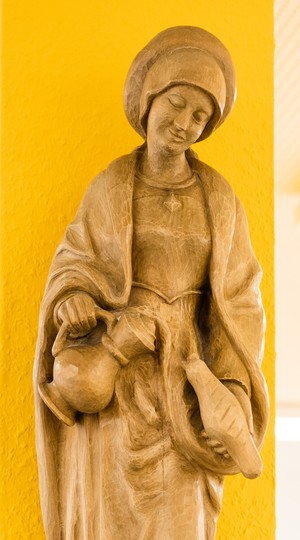 An verschiedenen Orten unserer Schule ist die heilige Elisabeth zu sehen. So werden wir immer wieder an sie erinnert.