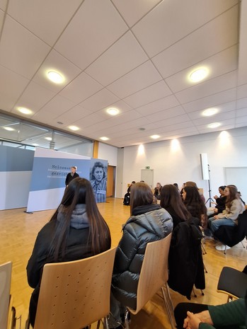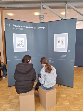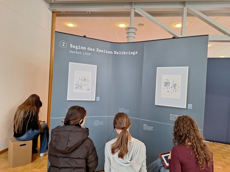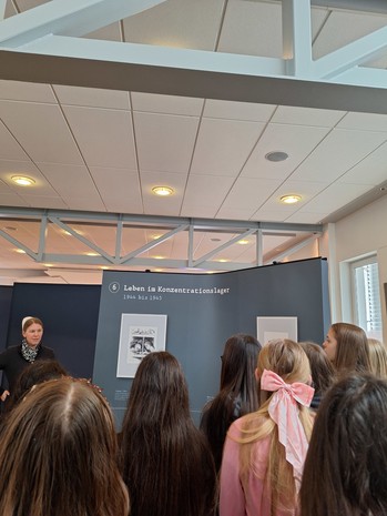 "Die Wanderausstellung »Holocaust gezeichnet« ist eine interaktive Zeitreise in die dunkle Vergangenheit der deutschen Geschichte. Neunzehn ausdrucksstarke Bleistiftzeichnungen der Holocaust-Überlebenden Ella Liebermann-Shiber (1923–1998) sowie Audioaufnahmen, Fotografien und Videoclips lassen das Leben und Leiden der Künstlerin lebendig werden. Gedenk- und Gesprächsimpulse geben Raum für emotionale Resonanz und regen zum Nach- und Umdenken an." Die Ausstellung hat die 9a sehr beeindruckt. Es wurde ihnen bewusst, wie gut es uns hier in Deutshland gerade geht, wie menschenverachtend die Nazizeit war und welche Kraft man in großer Not mobilisieren kann. Die Ausstellung ist sehr gelungen und wird absolut schülergerecht präsentiert. Es hat sich sehr gelohnt, sie zu besuchen.